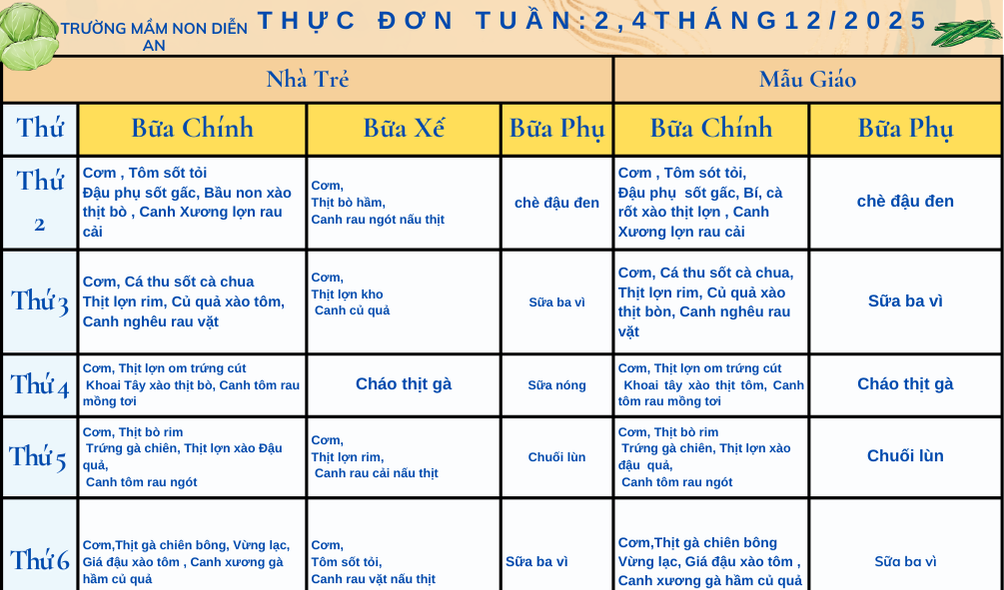 THỰC ĐƠN TUẦN 2,4 THÁNG 12- 2025